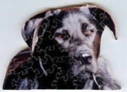 This is Pepe. He's a faithful companion and received top honors with a puzzle of his handsome self for his owner. This is a 5"x7" puzzle with 48 pieces.
