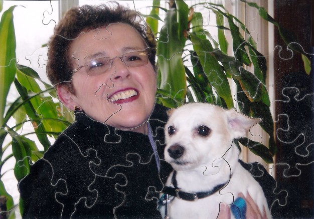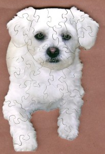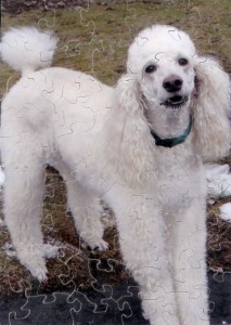 This puzzle was given as a surprise to a proud dog owner. Roco has just been groomed and looks his best. The puzzle was made from a digital image and is 5"x7" and about 25 pieces.